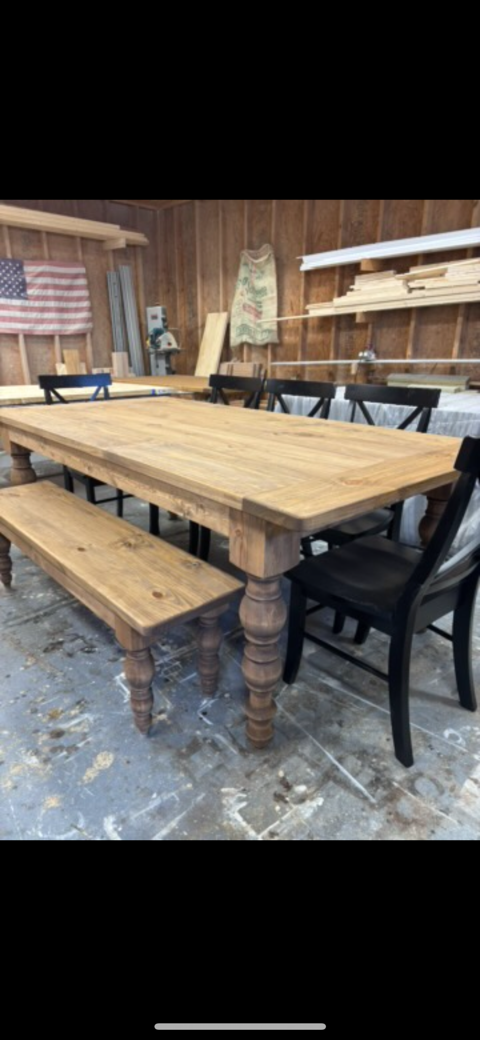 There are four options for the turned legs, the most popular being the chunky or sturdier legs and then there is the option for skinner turned legs