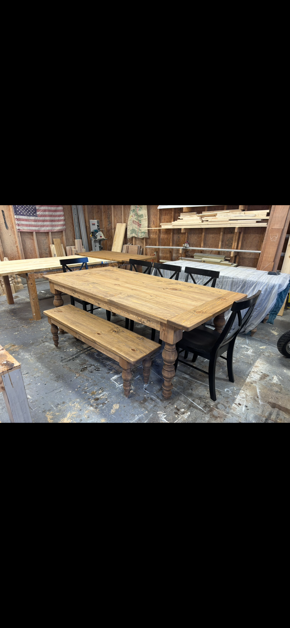Here we have the options to see the turned legs with chairs, while also having the options to order the different color combinations!